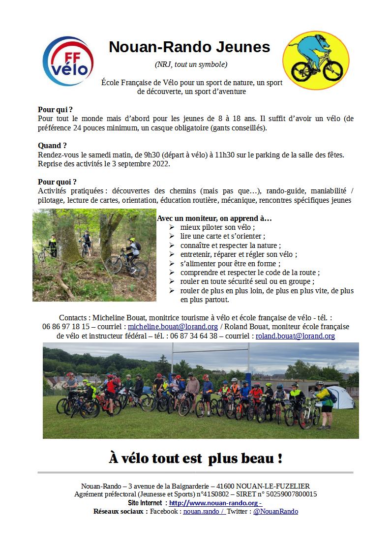 Pour tous renseignements complémentaires, s’adresser à l’école de cyclotourisme de Nouan-Rando (Micheline Bouat : tél. : 06 86 97 18 15 ou courriel ou au coreg (Jerôme Amiot : tél. : 06 11 61 42 43 ou courriel)