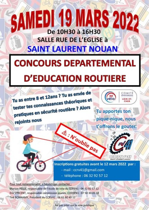Inscription au CDER (Concours Départemental d’Education Routière) De SAINT LAURENT / NOUAN