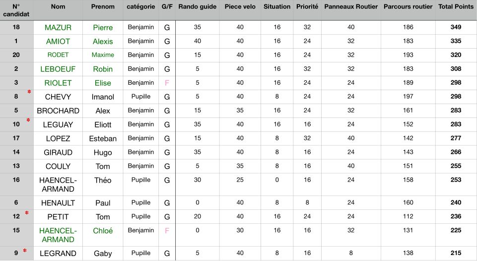 Cette épreuve était qualificative pour le CNER par équipes régionales (Concours National) qui voit la participation des 6 premiers benjamins (10 à 12 ans - 4 garçons & 2 filles en vert dans le tableau). Seul Eliott entre dans cette catégorie. Suite au désistement de qualifiés, il peut participer au CNER qui se tiendra à Voiron (Isère) les 29, 30 et 31 octobre 2021. Le club y sera très bien représenté puisque Micheline et Roland font partie de l’équipe organisatrice.