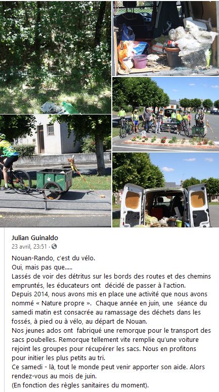 - samedi 15 mai : promenade accompagnée à vélo à partir de 14h00. S’inscrire au 06 86 97 18 15 ou au 02 54 88 76 85