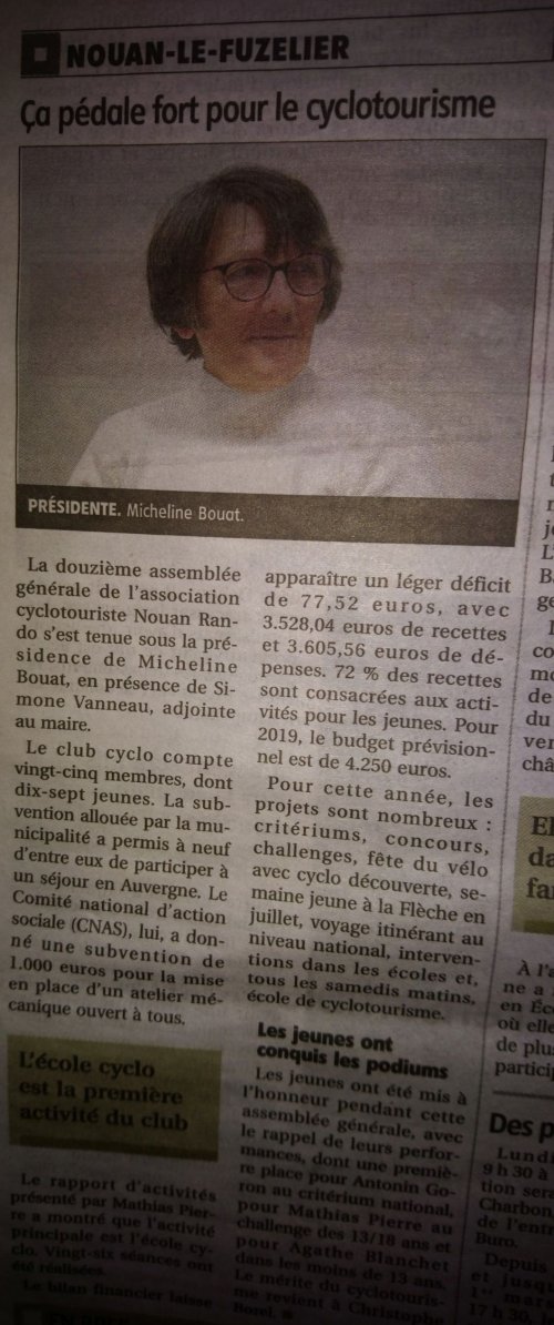 | 12/1/2019 | école de cyclotourisme | Nouan-le-Fuzelier |
