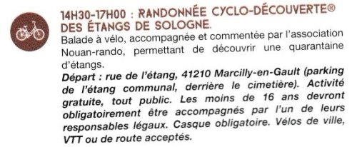 Nouan-Rando est engagé en proposant une cyclo découverte samedi 12 après midi au départ de Marcilly en Gault. ( encadrement par Roland et Micheline).