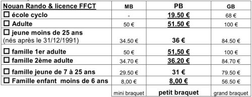 Les tarifs ci-dessous comprennent l’adhésion à Nouan-rando (8 € [1]).