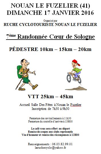 Le dimanche 17 janvier 2016 : randonnée « Cœur de sologne » à Nouan le Fuzelier.
