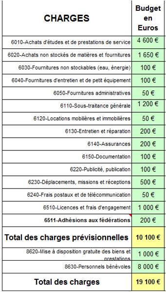 Voici le budget que le bureau a décidé de présenter pour la demande de subvention municipale pour 2014