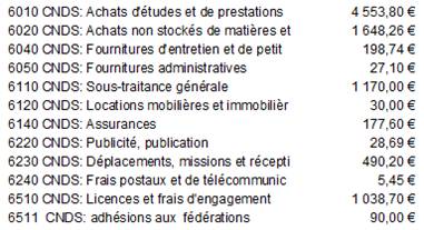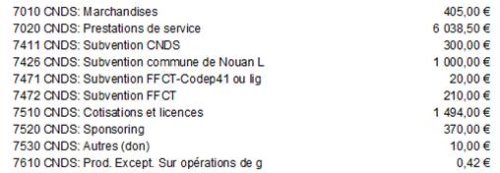 Nouan-Rando ayant l’agrément Jeunesse & Sports (DDCSPP ), l’association est tenue de respecter le plan comptable des associations. Toutes les sommes affichées ici sont reprises plus loin dans le résultat par activité qui est beaucoup plus parlant pour nous, adhérents de base.