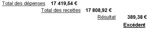 - les comptes licences et valorisation du bénévolat sont bien sûr équilibrés (recettes = dépenses)