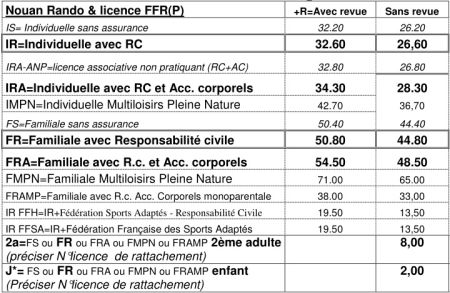 Les tarifs ci-dessous comprennent l’adhésion à Nouan-rando (8 € [1]).