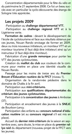 3.1 – École de cyclotourisme : l’agrément a été renouvelé pour tois ans (jusqu’au 19 février 2009)
