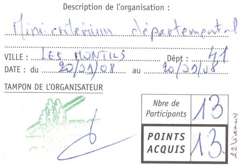 | Les finales régionales du critérium | 4 points par jeune particpant |