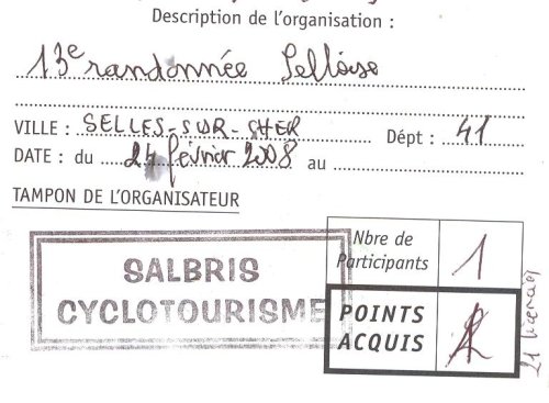 | 13ème randonnée selloise | Selles-sur-Cher | 24 février | 1 | 1 | |