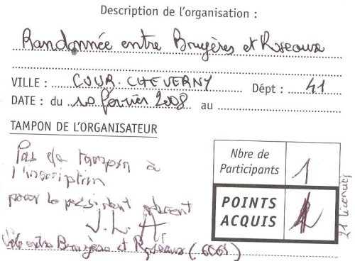 | Randonnée entre bruyères et roseaux | Cour-Cheverny | 10 février | 1 | 1 | |