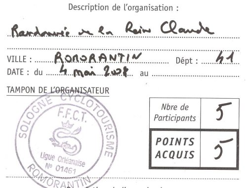 | Randonnée de la Reine Claude | Romorantin | 4 mai | 5 | 5 | |