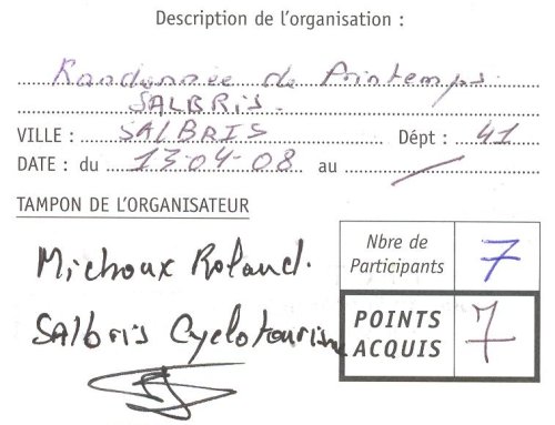 | Randonnée de printemps | Salbris | 13 avril | 7 | 7 | |