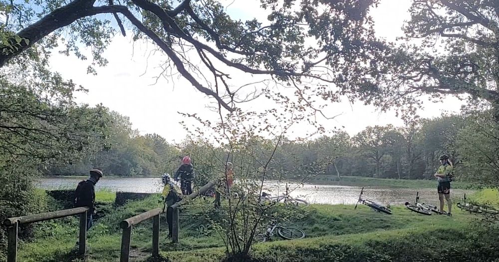 Si le thème principal était le franchissement (des bosses bien sûr), la séance a aussi permis de faire un peu de mécanique (réglage dérailleur et pose correcte d’un patin de frein avant).