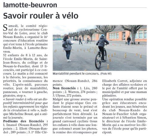 Les remerciements vont vers tous les éducateurs encadrant les jeunes, les bénévoles du club Nouan-Rando de Nouan-le-Fuzelier (club qui a tout organisé) et Sébastien Simon, le directeur de l’école Emile Morin qui a su motiver les élèves de l’école pour qu’ils participent.